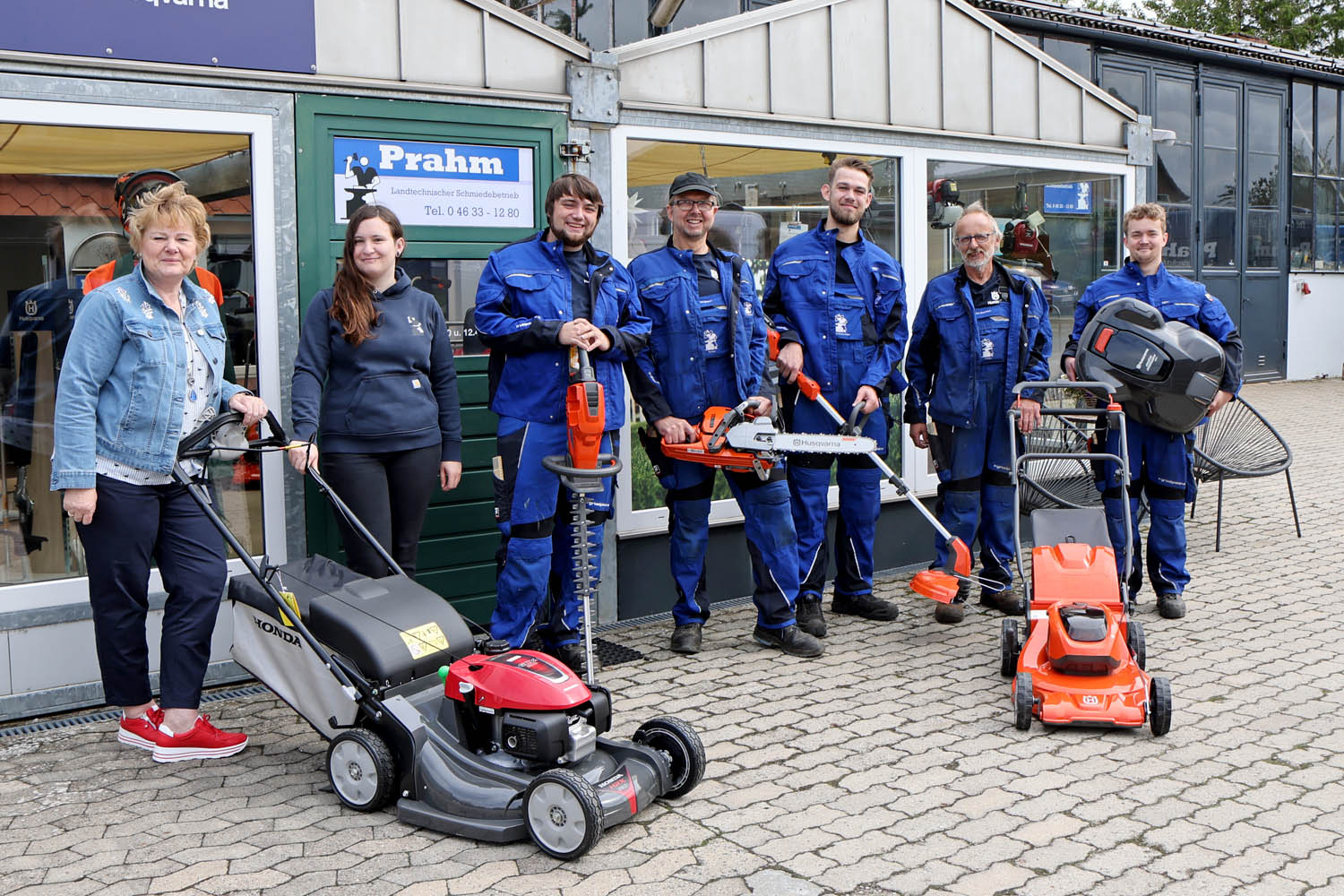 Seit 1955 ist die Schmiede in Hand von Familie Prahm. Während es in der ersten Zeit überwiegend um schmiedehandwerkliche Tätigkeiten im Zusammenhang mit der Landwirtschaft ging, wandelte und erweiterte sich das Tätigkeitsfeld der Schmiede mit den Jahren.
